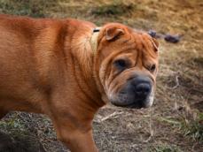 Benji (ca. 23 kg/Schulterhöhe 48 cm) ist ein Shar Pei Rüde mit FCI Papieren.