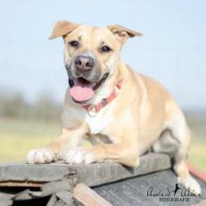 Boxer-Shar Pei-Mischling Mable (geb. 18.3.2012 ) ist eine quirlige, selbstbewusste und sehr aktive junge Hündin. Sie braucht klare Grenzen, ist dann aber eine absolute Knutschkugel.