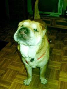 Sake ist ein sehr menschenbezogener Pei, der sich gerne beschmusen lässt. Kinder sind für ihn kein Problem.