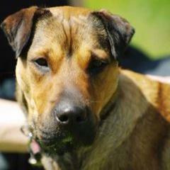 Boxer-Shar Pei-Mischling Mable (geb. 18.3.2012 ) ist eine quirlige, selbstbewusste und sehr aktive junge Hündin. Sie braucht klare Grenzen, ist dann aber eine absolute Knutschkugel.